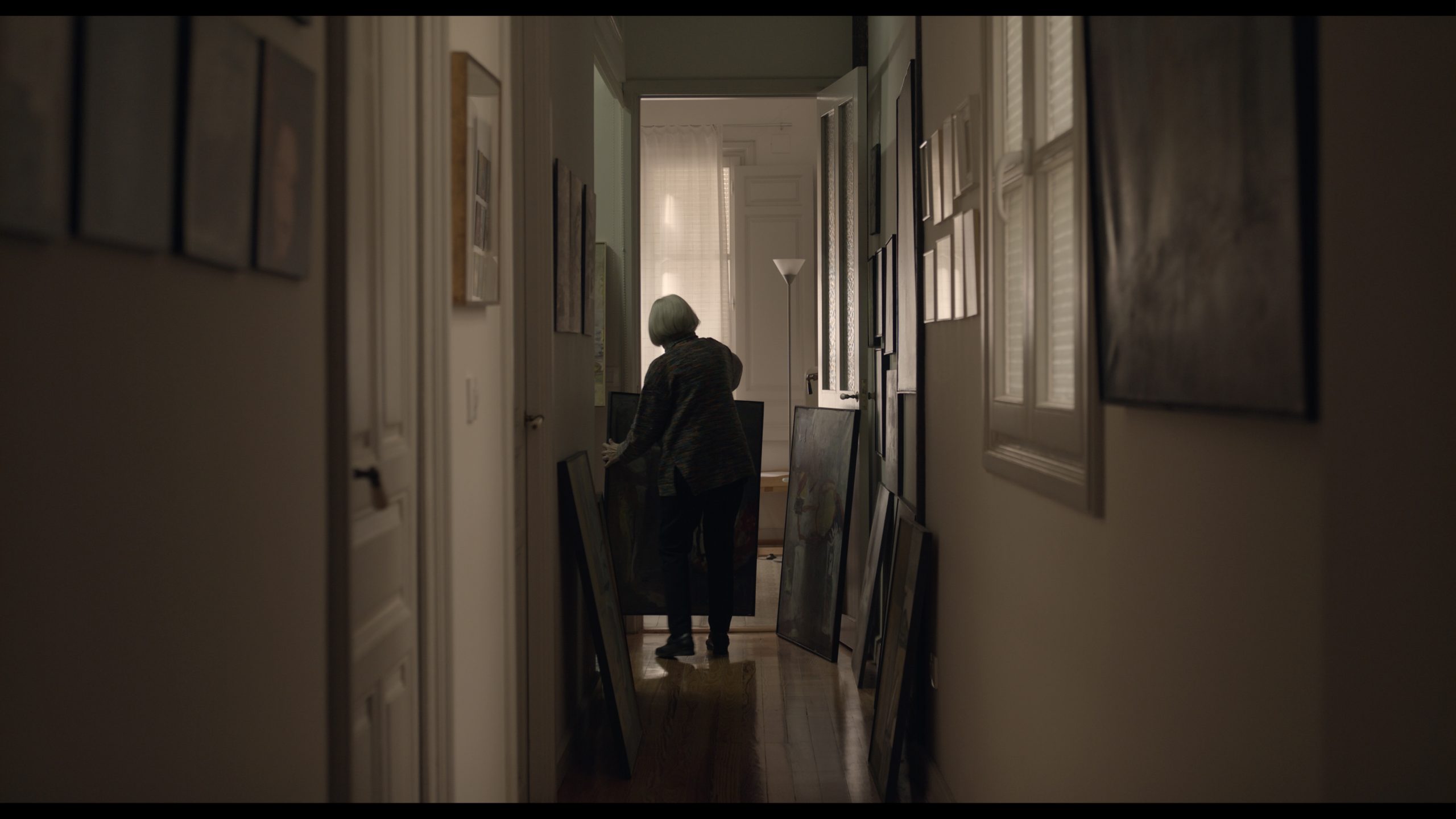 Aquí se desarrolla la vida doméstica en común de una pareja que convive desde hace medio siglo ya. La casa es al mismo tiempo espacio expositivo, sala de baile, cine, huerto y jardín. Y alberga el estudio de Julia, que es también su refugio. ‘Soy pintora y ama de casa. Es algo a lo que nunca he podido renunciar’.